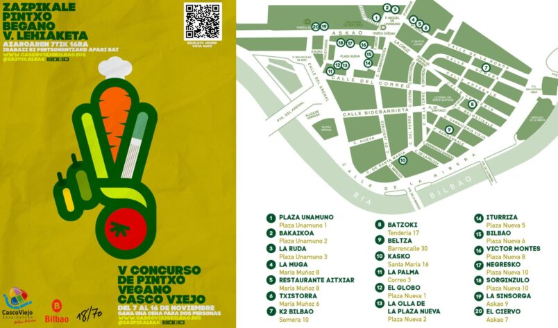 20 bares y restaurantes participan en la edición 2025 del concurso de pintxos veganos, que se celebra entre este viernes, día 7, y el 16 de noviembre.