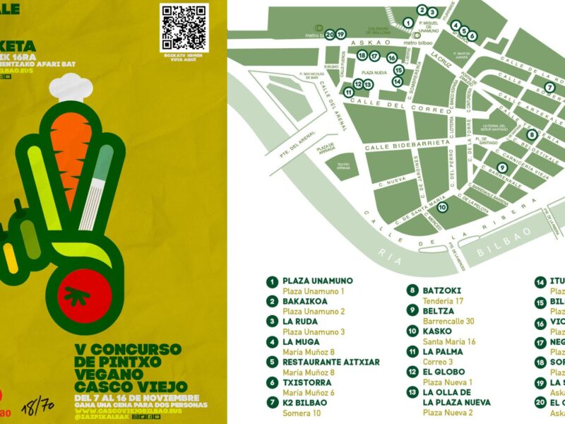 El Casco Viejo de Bilbao busca la mejor propuesta ‘veggie’ en el III Concurso de Pintxo Vegano, con 17 bares participantes